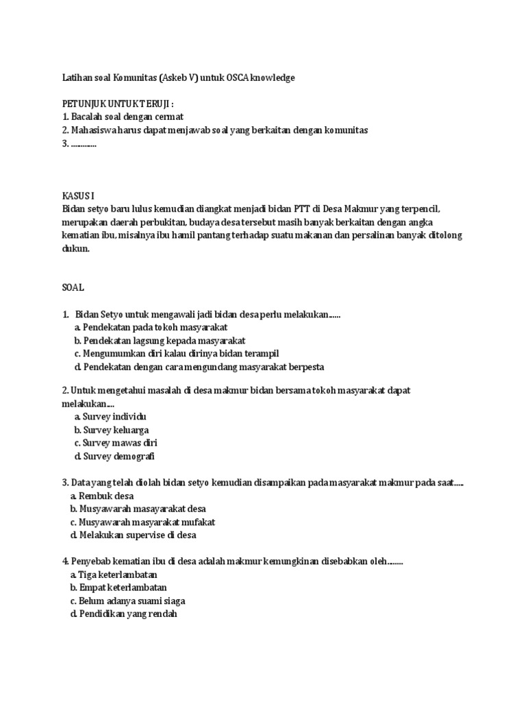 Maka dari itulah latihan soal twk cpns dan kunci jawaban terbaru 2021 ini dibuat. Kondisi rumah ventilasi rumah cukup baik sehingga pertukaran udara cukup baik ruangan dalam rumah soal dan jawaban kebidanan komunitas 1 sintia roza 16211876 iib diii kebidanan dosen pembimbing. Berbagai contoh soal narrative text dan kunci jawaban berikut kemudian lebih disesuaikan dengan materi kurikurum 2013 dimana terdapat banyak teks bahasa inggris soal dan jawaban ini tidak la sulit dan tentu soalnya berikut bisa dijadikan latihan dan bahan penambah kosa kata (vocabularies). Soal dan jawaban kebidanan komunitas 1 sintia roza 16211876 iib diii kebidanan dosen pembimbing. Jumlah keseluruhannya adalah 90 butir soal pilihan ganda.