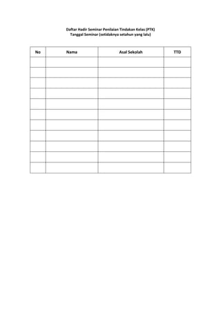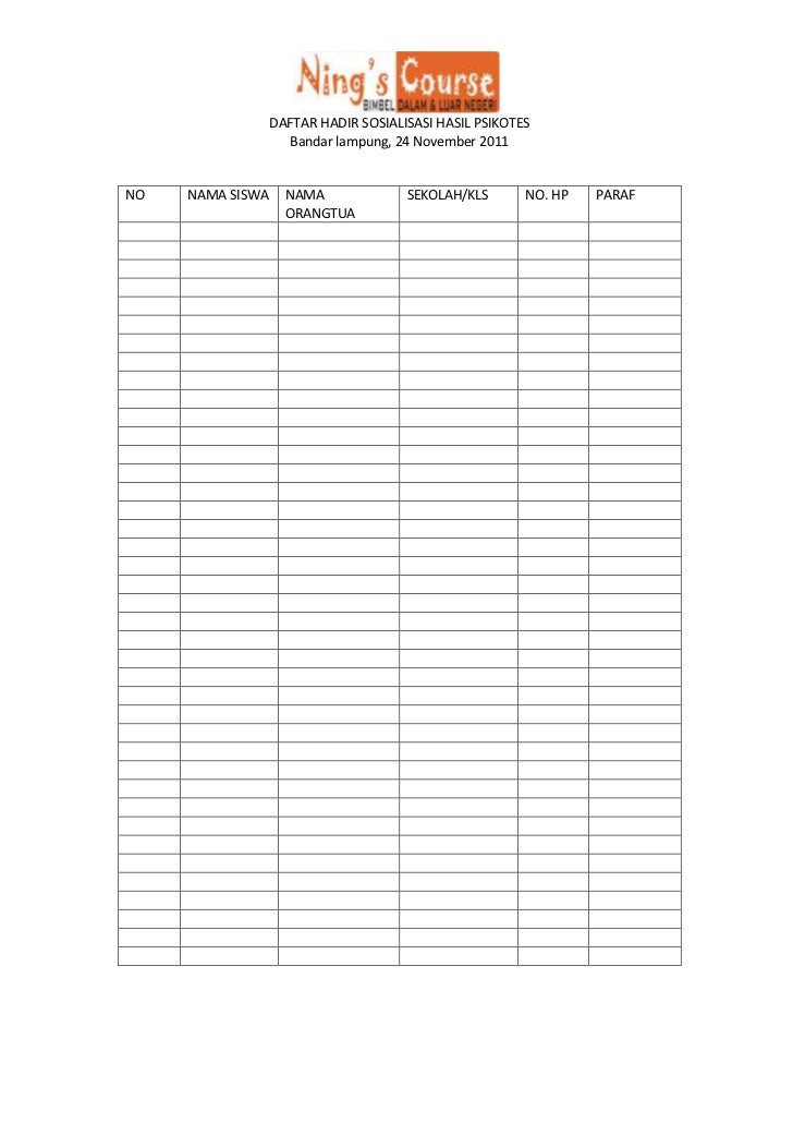 Tapi saya akan bagikan kebanyakan orang yang sering menggunakan form absensi pada saat rapat yang pernah saya ikuti. Januari 2015 kedatangan kepulangan no tanggal tanda tanda jam. Jurusan teknik sipil last modified by: A short summary of this paper. Contoh daftar hadir mahasiswa dan dosen (dhmd) dwi septiyani rahayu.