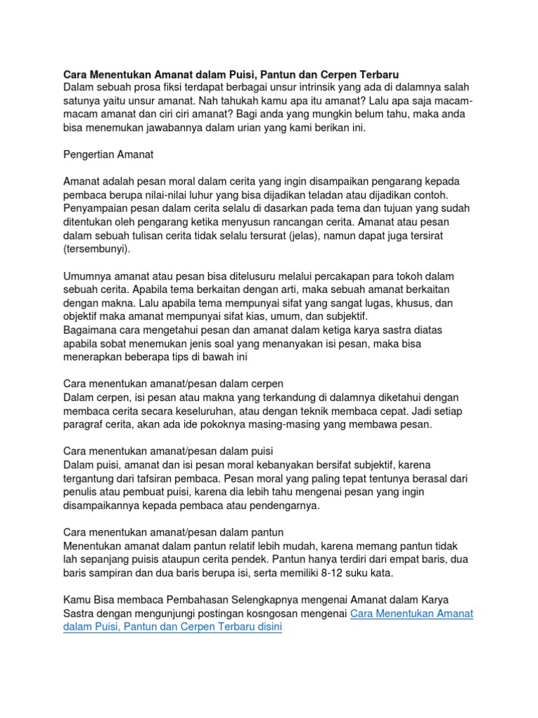 Contoh Soal Menentukan Unsur Intrinsik Karya Sastra Tokoh Latar Watak Tokoh from imgv2-1-f.scribdassets.com Di sanalah kami selaku guru kelas 6 berkumpul dan mendapatkan informasi tentang ini. Karya sastra yang berbentuk prosa meliputi novel, cerpen, roman, atau novelet. Informasi tersurat adalah informasi yang langsung bisa diketahui dari sebuah bacaan. Peserta didik dapat menentukan informasi tersurat pada karya sastra. 1 kelayakan karya sastra sebagai bacaan siswa sekolah menengah pertama (smp/mts) feasibility of works as reading middle. Ylki hanya bertugas meneliti amdk gelas dan tidak perlu meneliti amdk botol atau. Nikmati harta haram, secara terhormat sampai saat mati. Materi informasi tersurat pada karya sastra.