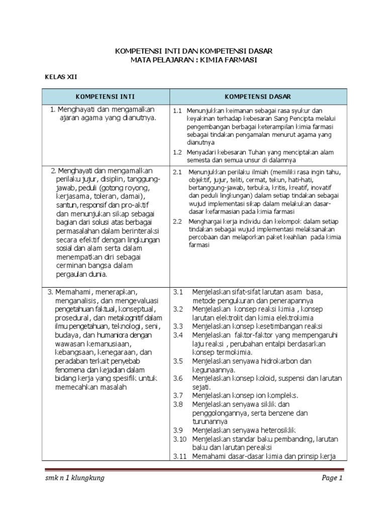Buku guru dan buku siswa sma kelas x xi xii kurikulum 2013. Kimia farmasi kompetensi keahlian farmasi klinis dan komunitas kelas xi adalah buku ajar yang penyusunannya telah disesuaikan dengan kompetensi keahlian siswa smk farmasi. Materi kimia kelas xi asam basa. Silabus kimia farmasi klinis komunitas smk kelas 12 dapat di download dengan klik disini. Jul 12, 2021 · silabus kimia farmasi klinis komunitas smk kelas 11 dapat di download dengan klik disini. Istilah asam (acid) berasal dari bahasa latin acetum yang berarti cuka. 3.8 memahami senyawa siklik dan penggolongannya, serta benzene dan. Istilah basa (alkali) berasal dari bahasa arab yang berarti abu. Jul 13, 2020 · buku paket kimia kelas 11 kurikulum 2013 edisi revisi guru ilmu. Download juga silabus produk kreatif dan kewirausahaan kelas 11 smk/mak revisi 2017. Nov 22, 2020 · rpp kimia farmasi kelas xi (11), xii (12) smk/mak rencana pelaksanaan pembelajaran (rpp) kompetensi keahlian: Hai adik adik dimana saja berada. Pdf rpp k13 revisi 2016 kd 3 6 ikatan kimia untuk sma kelas xi.