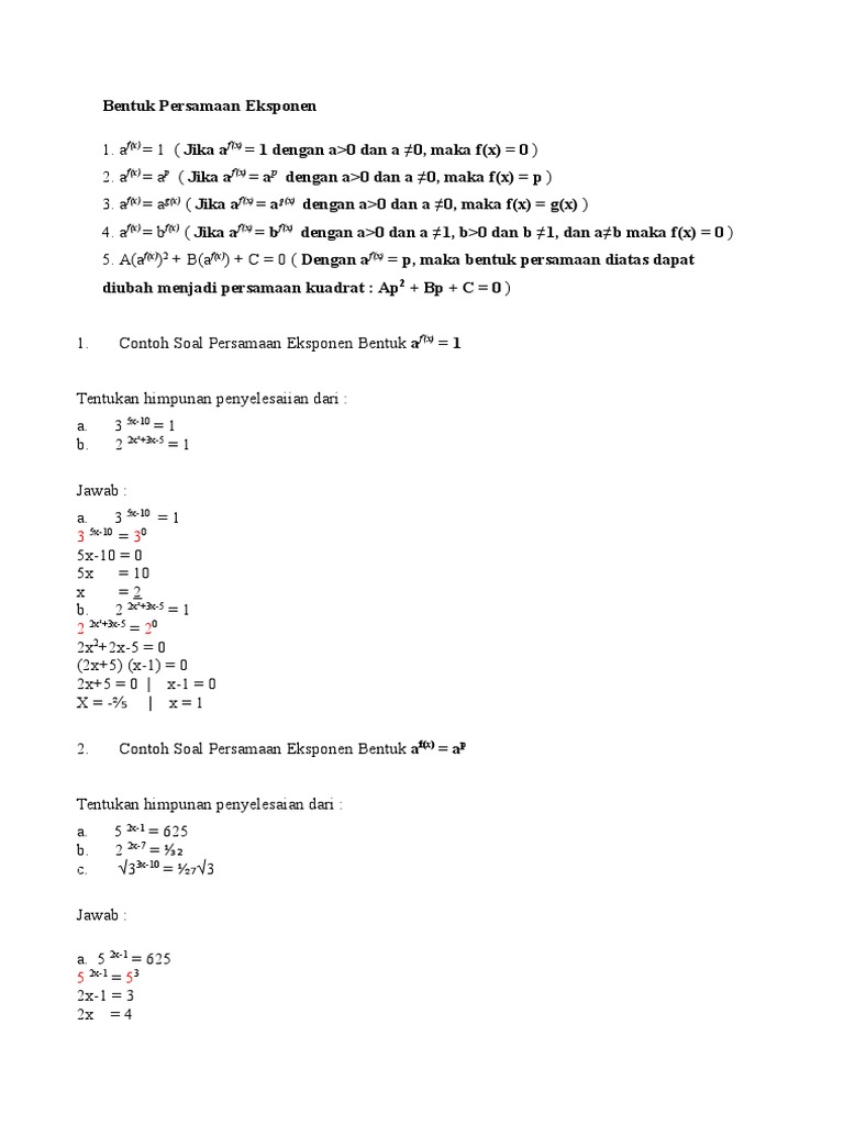 Kumpulan Soal Persamaan Eksponen Kelas 10 - Sifat Sifat Persamaan Eksponen Cara Golden / Kumpulan soal logaritma kelas 10 dan pembahasan soal no.